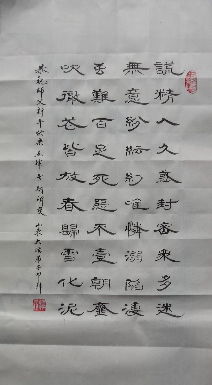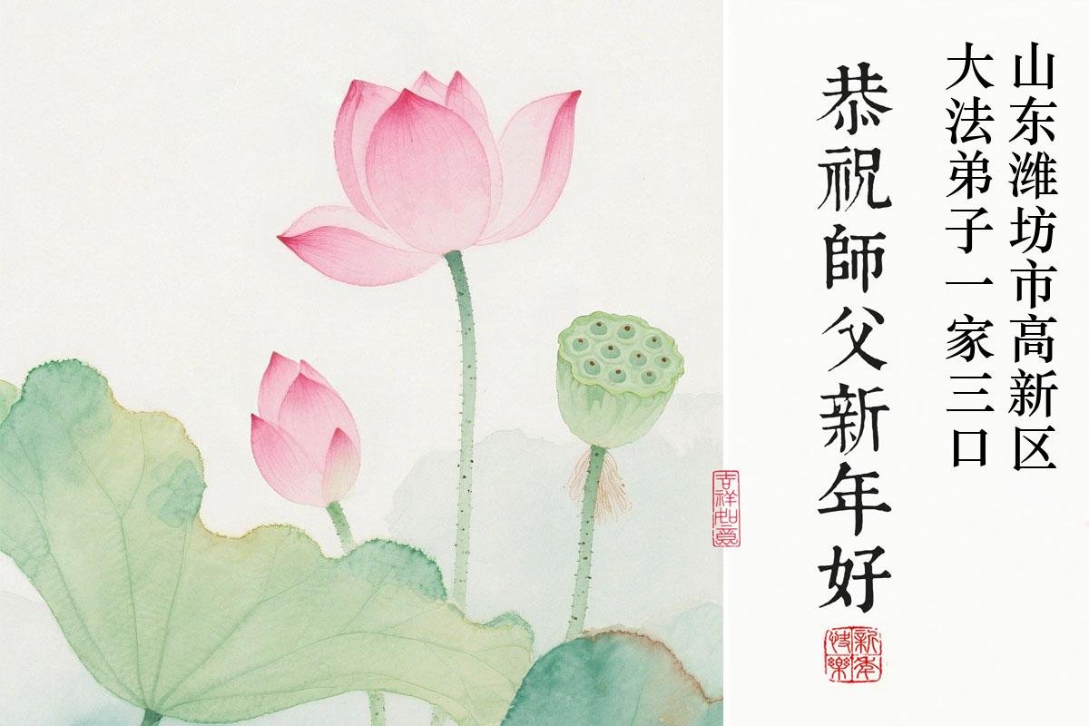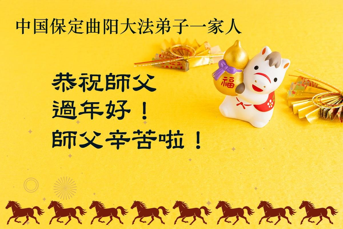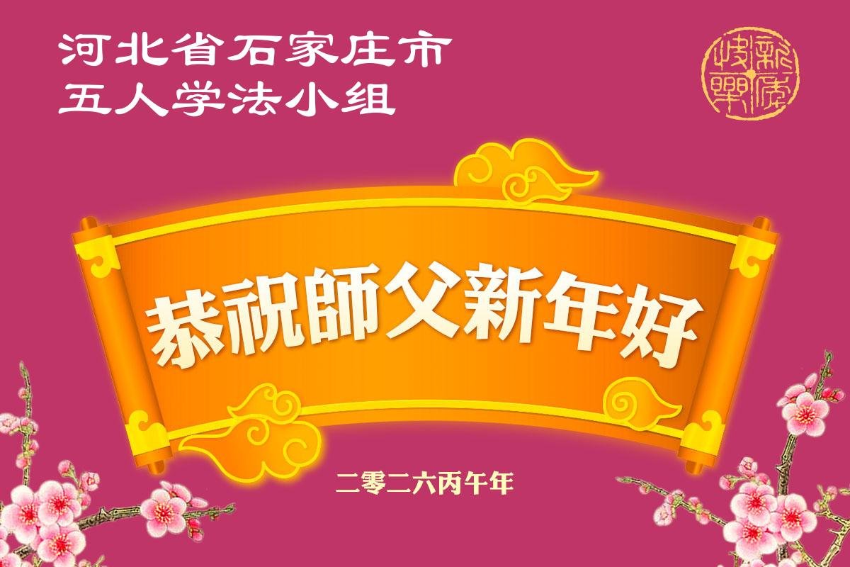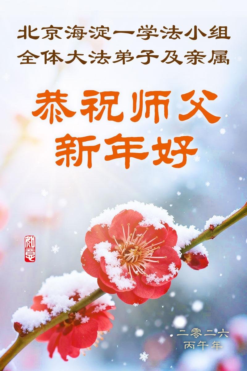 在新的一年到来之际,我们北京学法小组全体大法弟子向慈悲伟大的师尊拜年!师父您好!您辛苦了!我们有信心和决心在新的一年遵照师尊的谆谆教导,修去人心,做好三件事,学法修心向内找,讲真相,做个名副其实的大法弟子,跟师父回家。