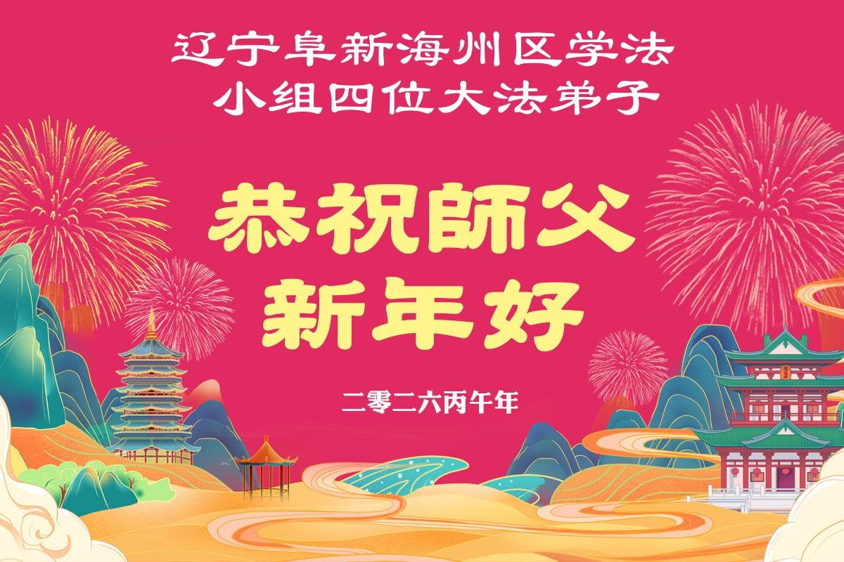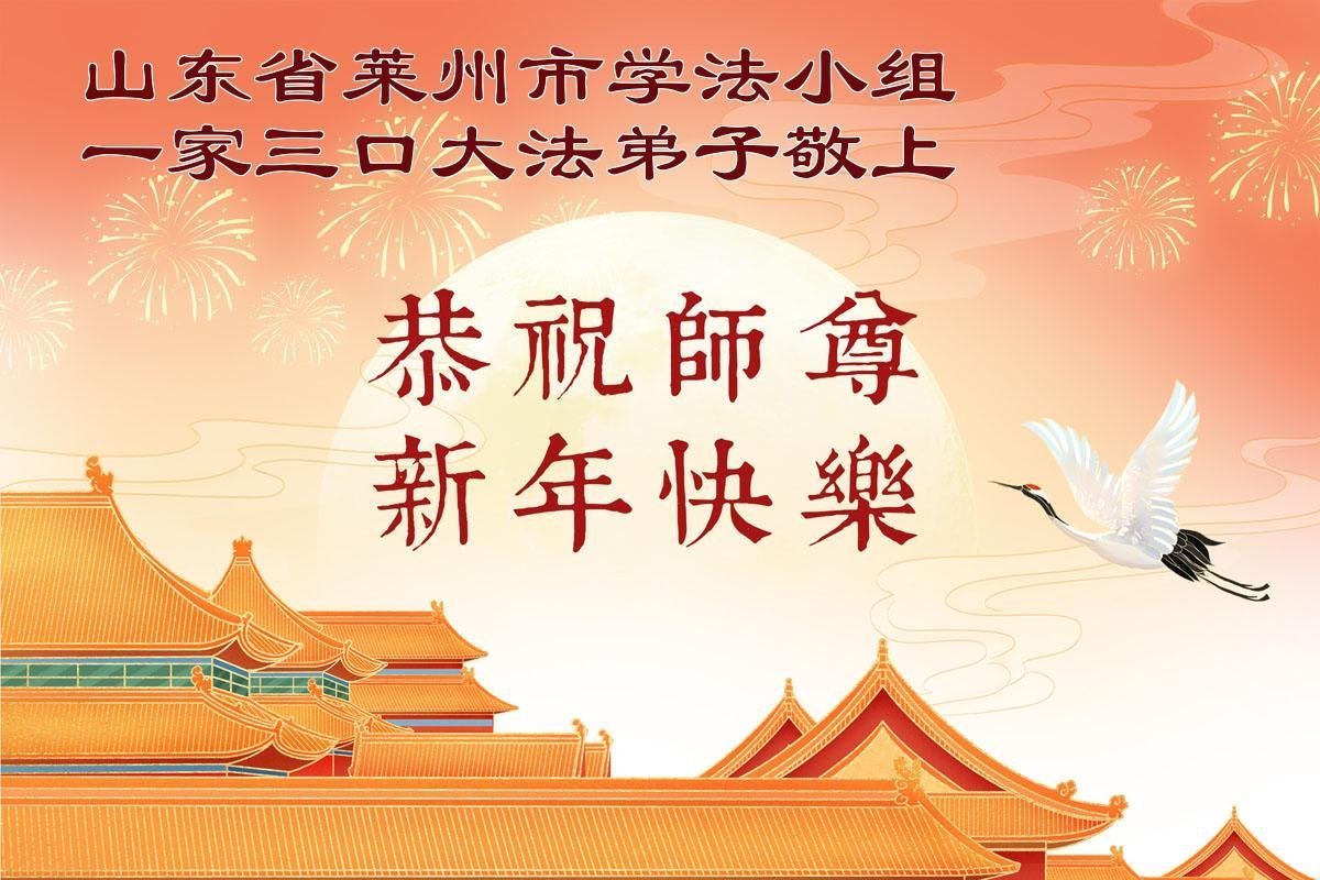感谢师父对弟子们时时刻刻的看护!为了我们这些在外地的大法弟子不至于落下,安排机缘让我们天南海北的大法弟子能够相识,能在一起学法、修炼。我们都无比的感恩师父给我们这个机会,谢谢师父!弟子们也会把握好这个机会,精進实修,走好师父给安排的路。师父为弟子们的修炼操尽了心,费尽了心血,一步一步的引领着我们走好修炼的路。没有语言能表达弟子对师父的感恩!师父您辛苦了!谢谢师父!新年到来的时刻,我们在外地的学法小组四人给师父拜年了!
