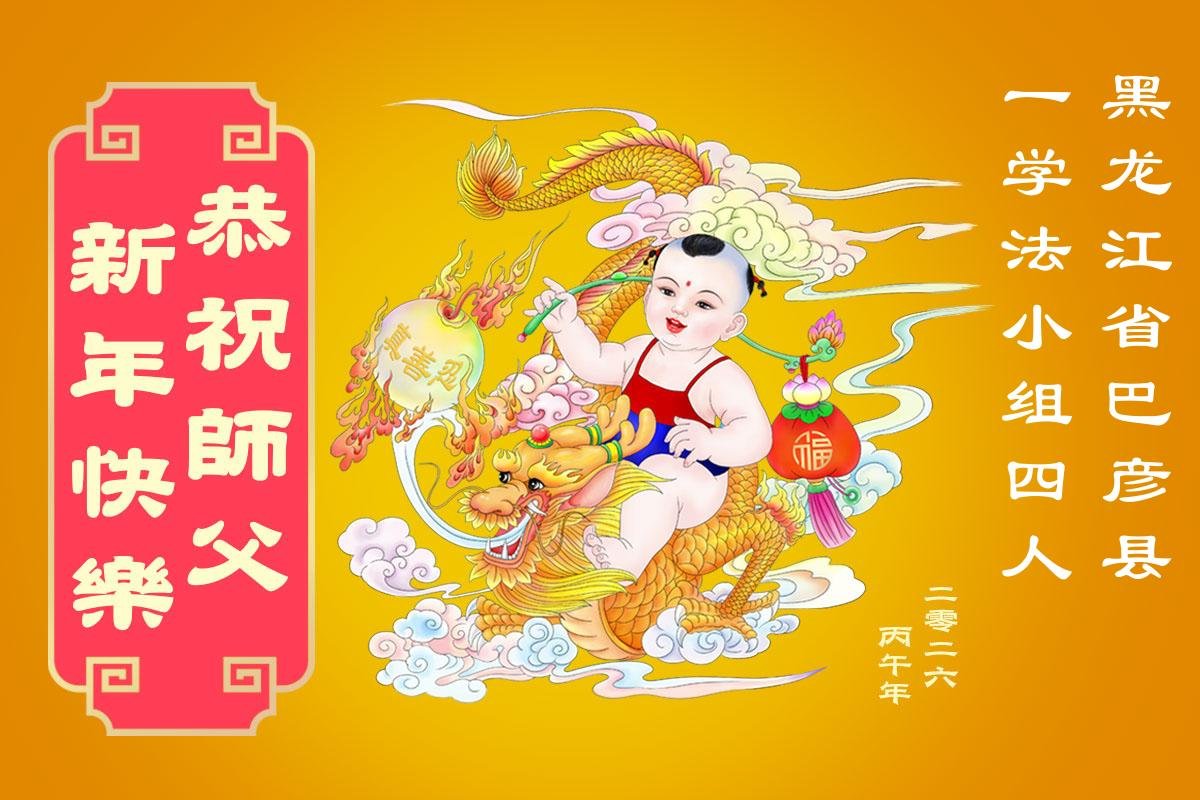 恭祝慈悲伟大的师尊过年好!弟子们成立学法小组时,想到没被迫害之前师尊当年给弟子们留下的炼功场、学法场,那壮观的景象,现在还依然历历在目,大家在一起学法、炼功、家庭和睦、走路生风,整个社会都处于和睦状态……弟子们会多学法、以法为师、共同精進、共同配合,做好三件事,圆满随师还。