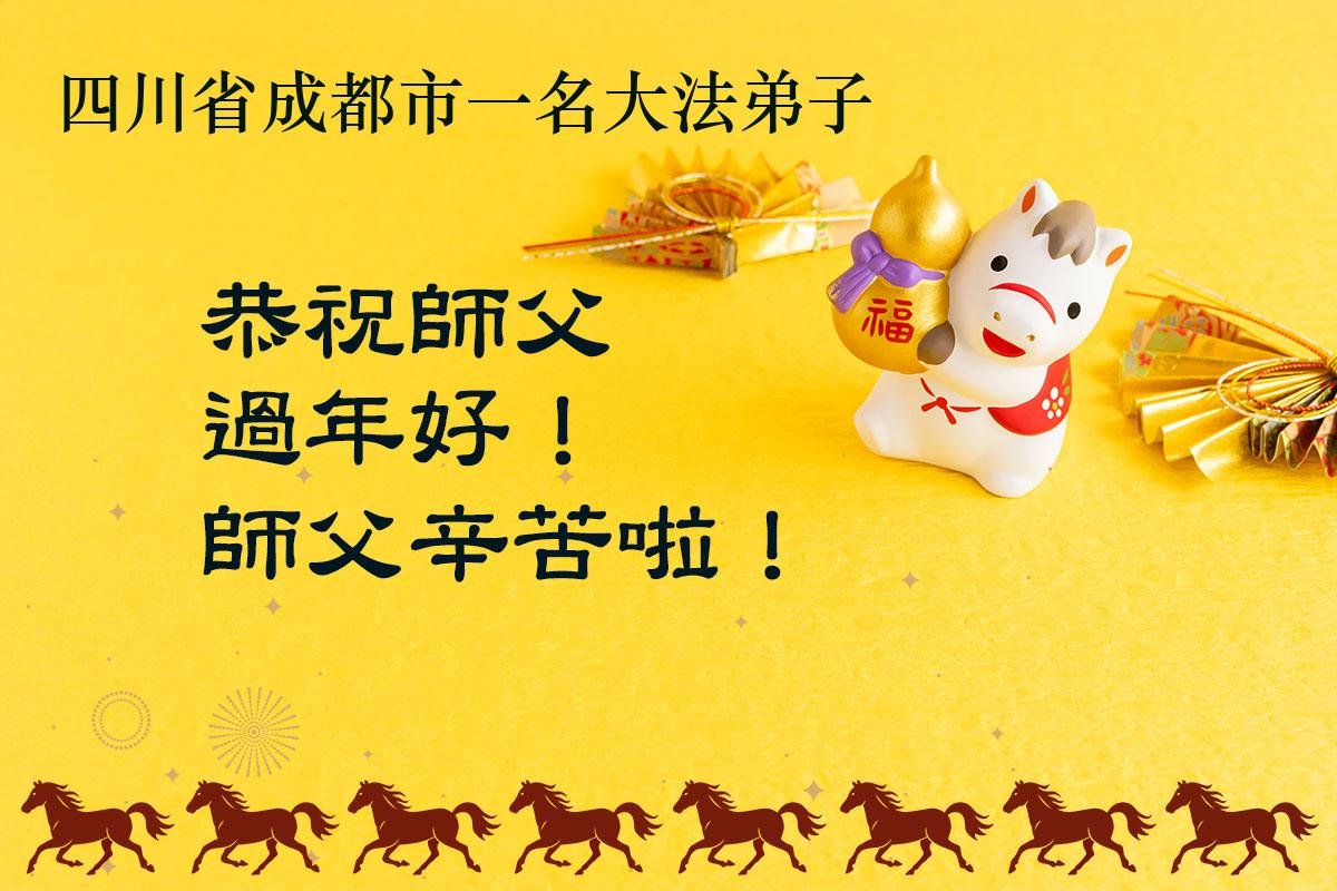 尊敬的师父,新年好!您辛苦了!多年来,您为弟子与众生付出承受的太多太多了,弟子无限感恩与珍惜!得救的众生无不欢欣鼓舞,感恩师父的慈悲救度!弟子会更加努力做好三件事,走好今后的路。愿师父多一份欣慰,少一份操劳。