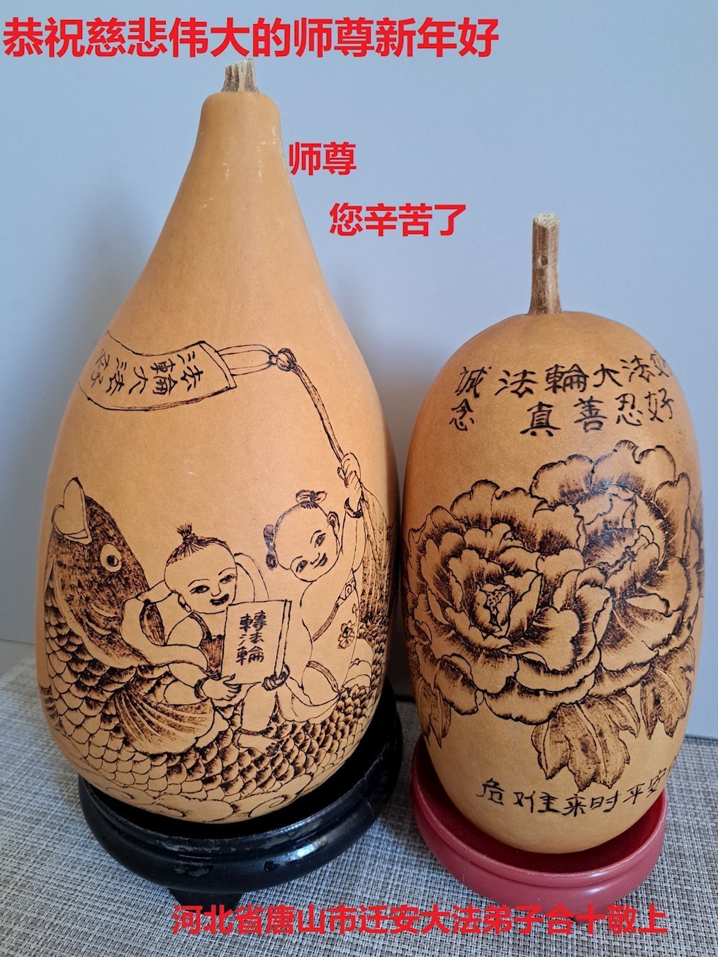 今天是腊月初一,快过大年了,我们姊妹俩在此给尊敬的师父拜年!感恩师父的慈悲普度,恭祝师父新年好!在新的一年里,我们会听师父的话,抓紧时间修好自己多救人。让更多的众生明白:法轮大法好,真善忍好!