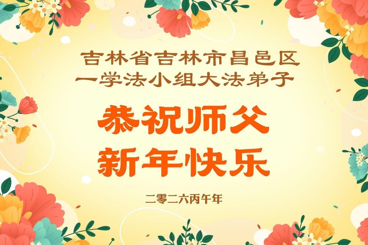 慈悲伟大的师父好!师父您辛苦了!我们学法小组的全体同修心怀无限的感恩给慈悲伟大的师父拜年!遥祝师父新年好!谢谢师父对弟子的加持与看护!时间过得很快,稍纵即逝。我们会珍惜每一次的集体学法时间,静心学法、学法入心。我们也会珍惜同修间的这份圣缘,彼此互相鼓励、互相帮助。每当同修间有了问题时、有了矛盾时能首先想到自己是修炼人,能向内修自己的人心,能用大法要求自己。在每个人都提高自己心性的同时,我们的整体也得到了提高。正法接近尾声,弟子们不忘救人的使命,勇猛精進,兑现誓约。不让自己的天国众生失望,不给自己的修炼留下遗憾。