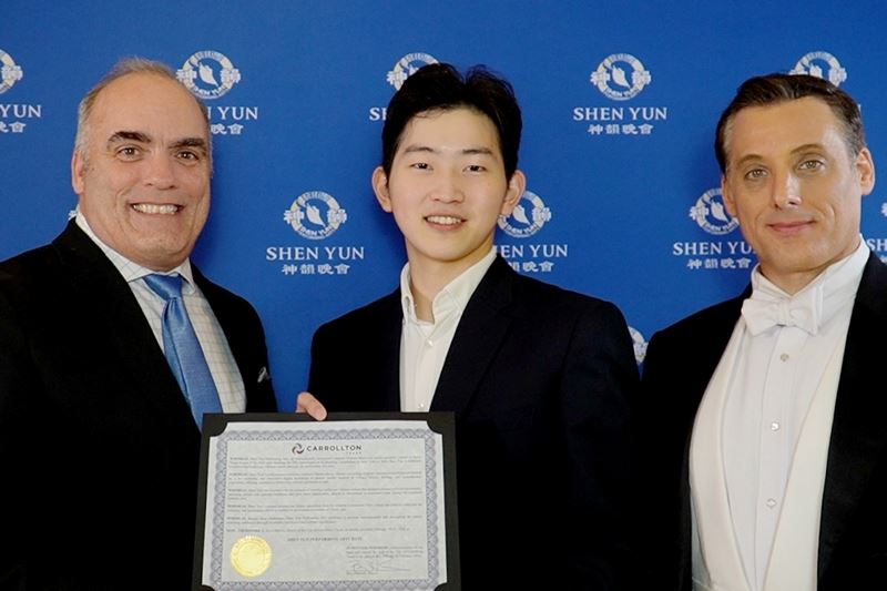 德州卡罗尔顿市(Carrollton)市长史蒂夫·巴比克(Steve Babick)二月十日晚亲临剧院向神韵颁发褒奖,宣布二零二六年二月十日至十一日为卡罗尔顿市“神韵日”。