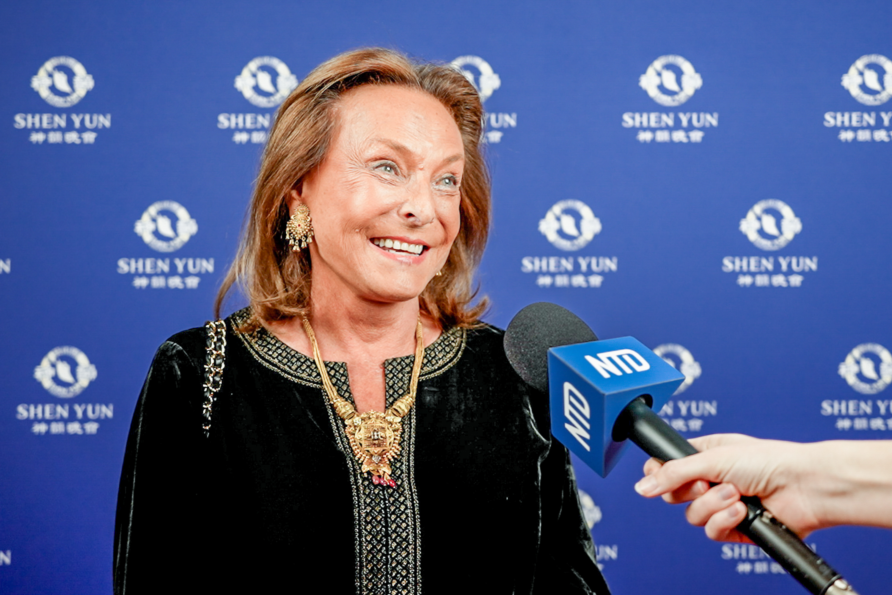 图17:二零二六年二月二十一日晚,罗马尼亚历史贵族成员、慈善家弗朗索瓦丝·斯图尔扎(Françoise Sturdza)在瑞士洛桑观看了神韵演出。(新唐人电视台)