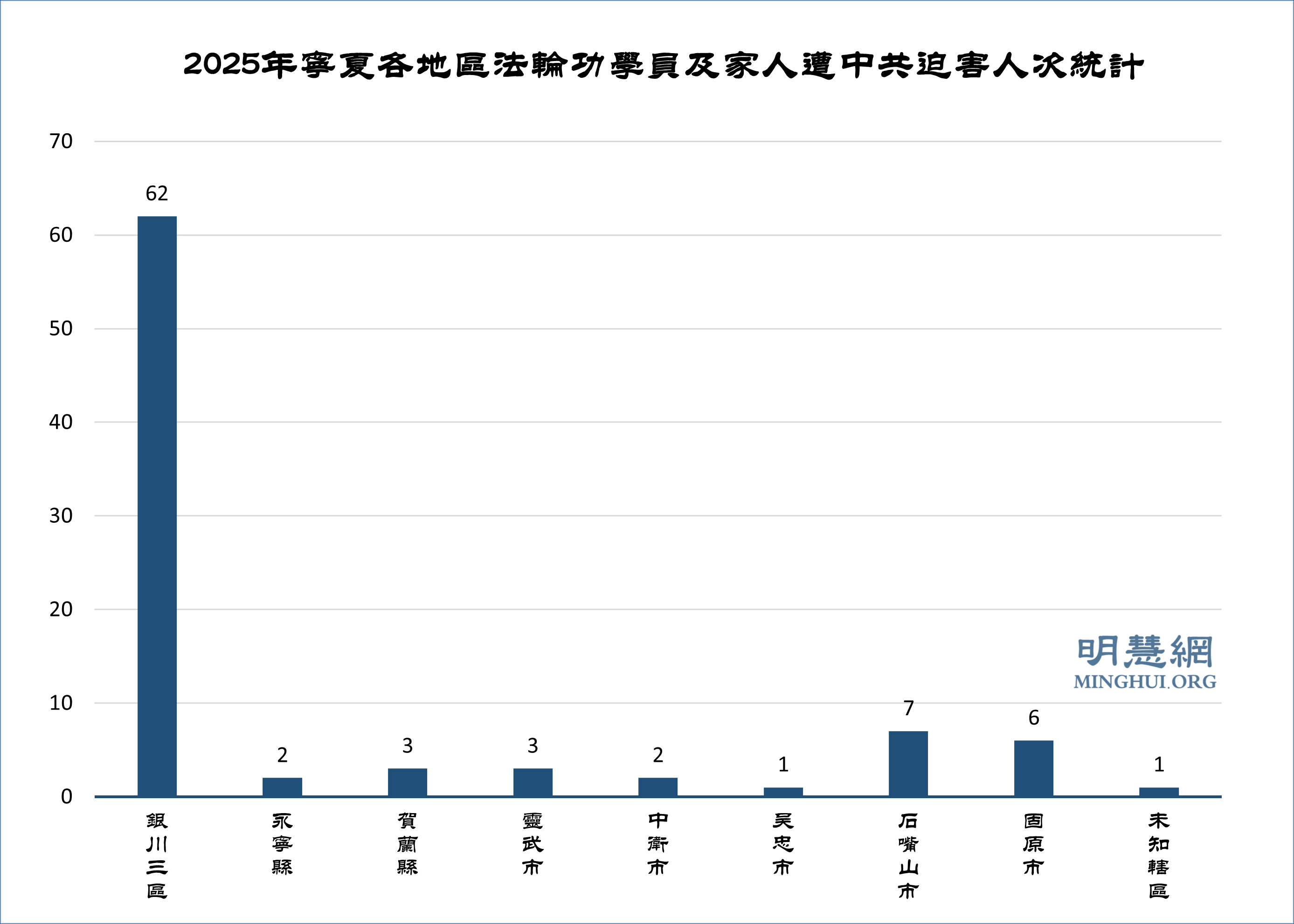 ![]() 图2:2025年宁夏各地区法轮功学员及家人遭中共迫害人次统计 |