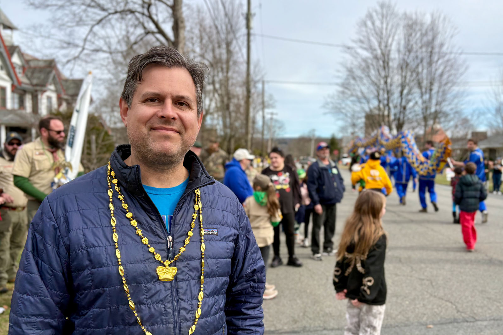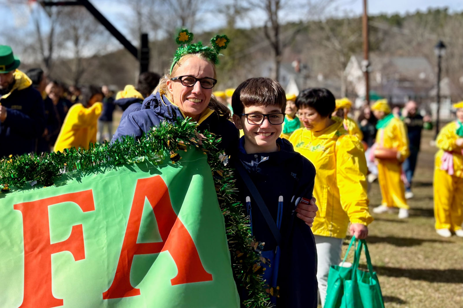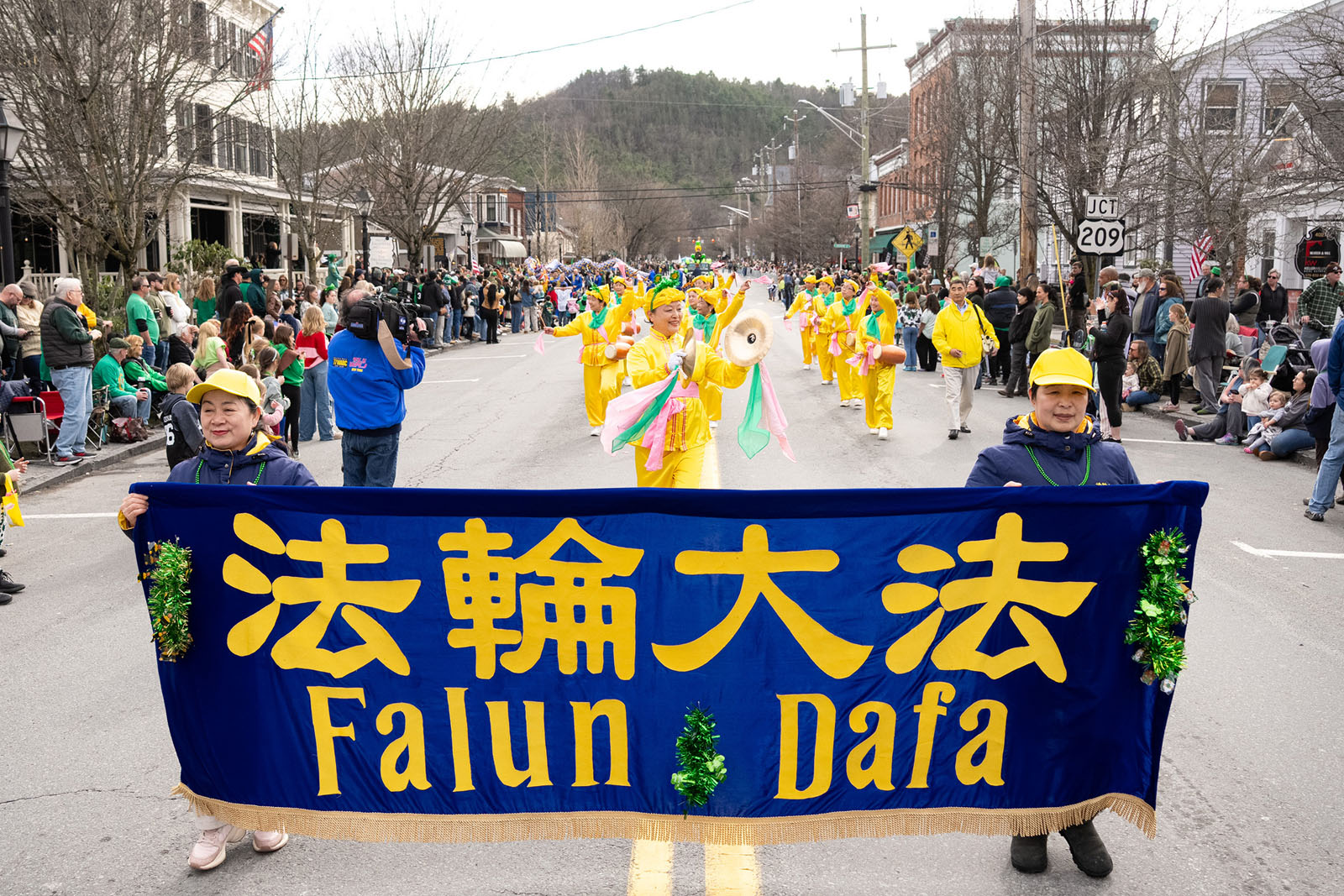 【明慧网二零二六年三月二十三日】二零二六年三月二十一日,法轮功学员受邀参加了宾州米尔福德镇(Town of Milford)举办的圣帕特里克节游行。法轮功学员展示了传统中国文化元素,如舞龙和仙女舞,为原本以爱尔兰文化为主的游行增添了多元文化氛围。