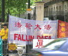 | 李瑞环访英 英国法轮功学员展示功法并和平请愿(图) |