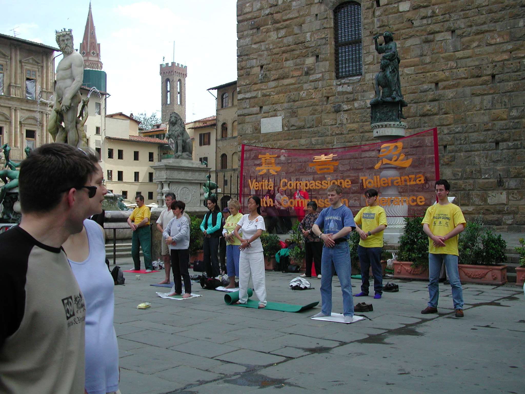 | 李瑞环访英 英国法轮功学员展示功法并和平请愿(图) |