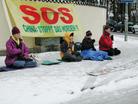 | 图片:瑞典斯德哥尔摩学员在风雪中呼吁制止江氏集团的残酷迫害 |