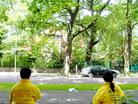 图片报道:荷兰学员中使馆前发正念 支持公审江×× |