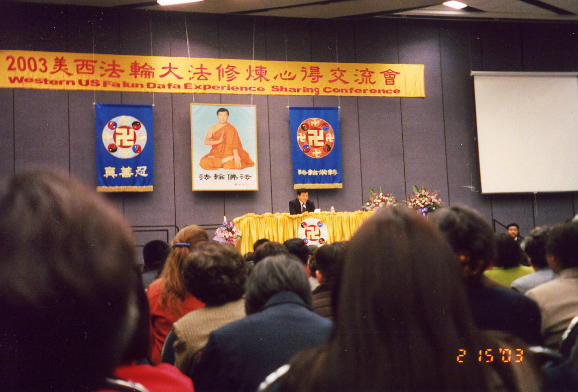 图片资料:美西法会会场;美中法会期间的炼功场面 |