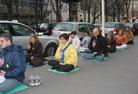 | 图片报道:法国法轮功学员中使馆前要求立即无条件释放李祥春、林文蓉 |