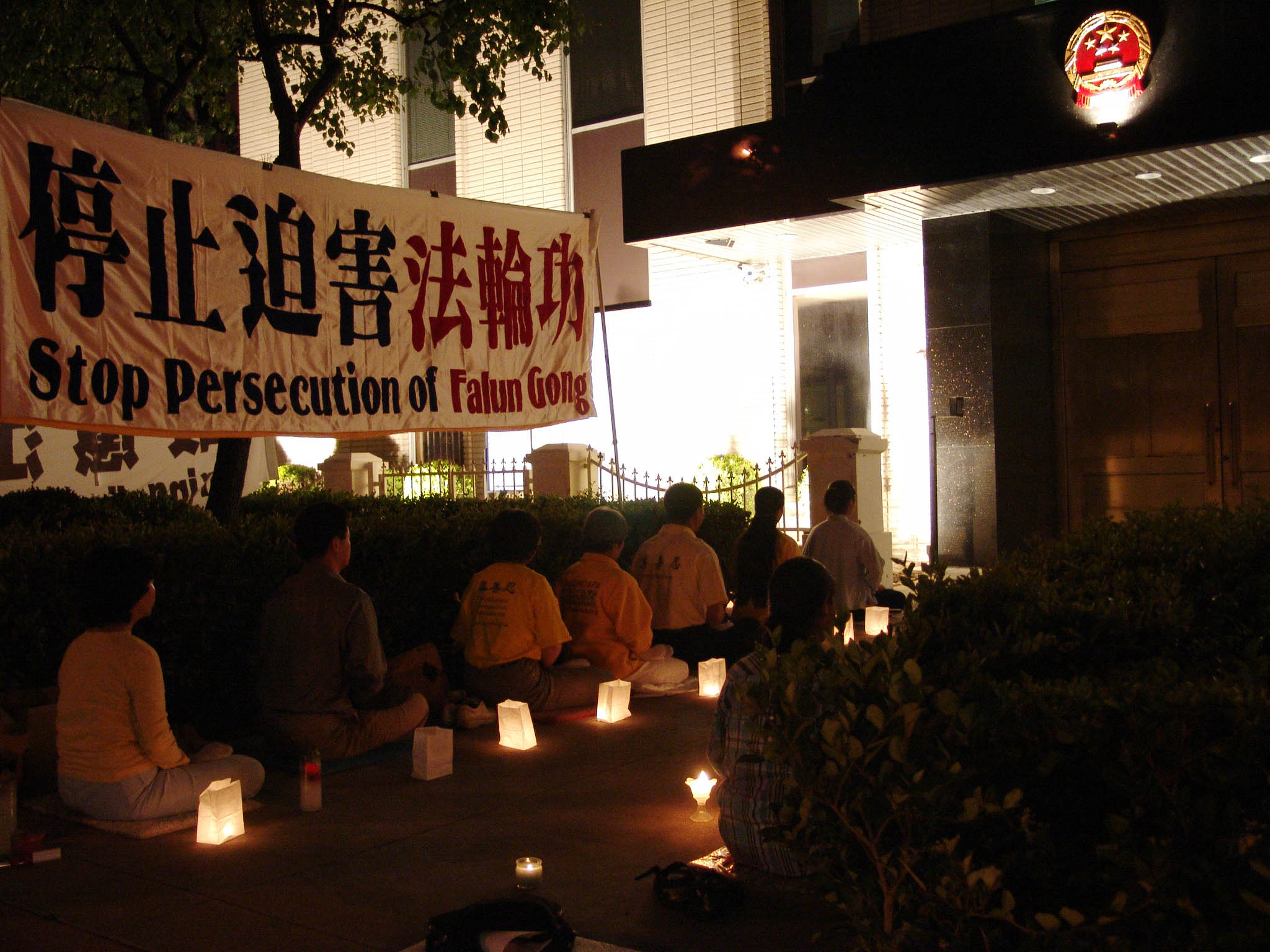 4.25五周年 洛杉矶法轮功学员中领馆前烛光纪念(图) |