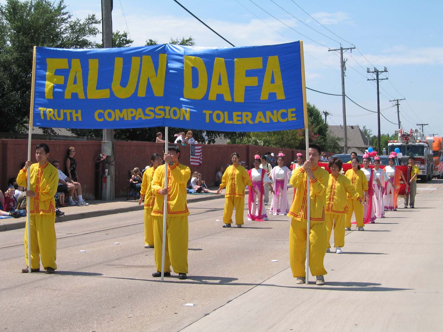 法轮功学员参加美国德州布兰诺市独立日大游行(图) |