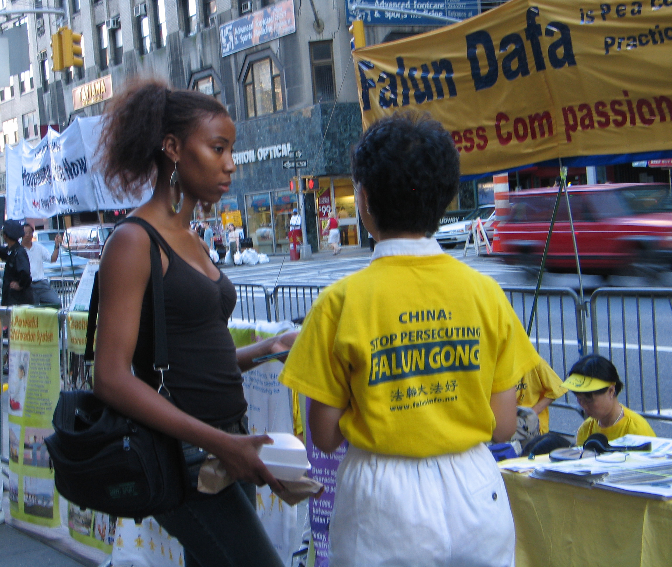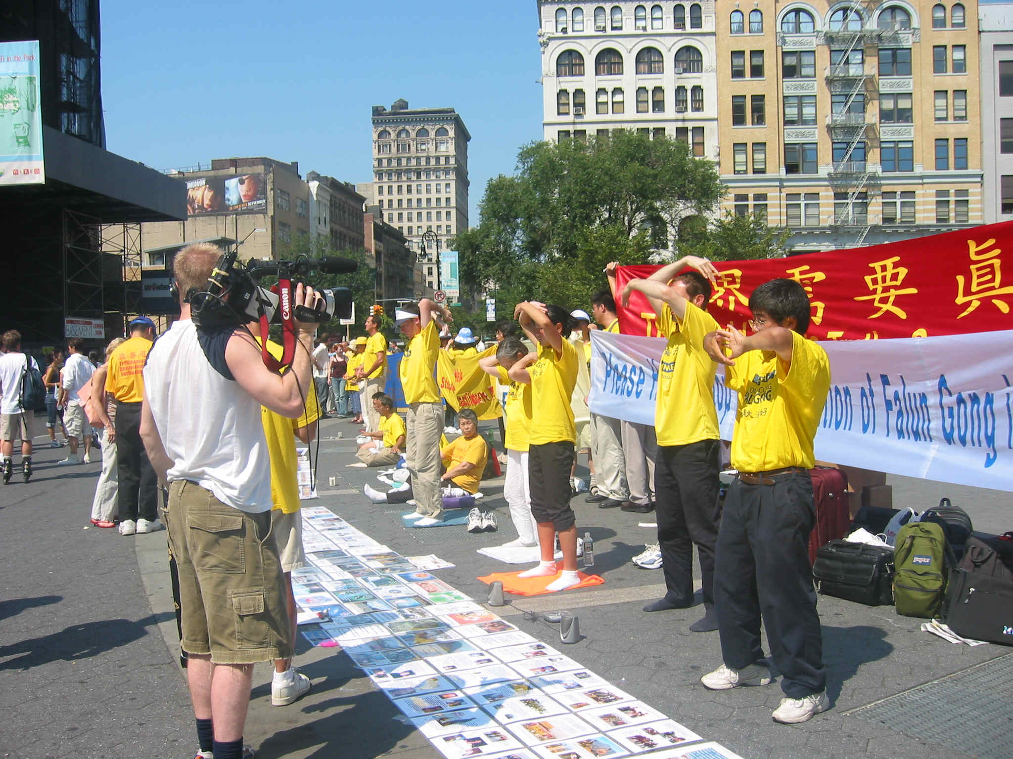 法轮功曼哈顿街头反酷刑展 纽约人了解真象反迫害(图) |