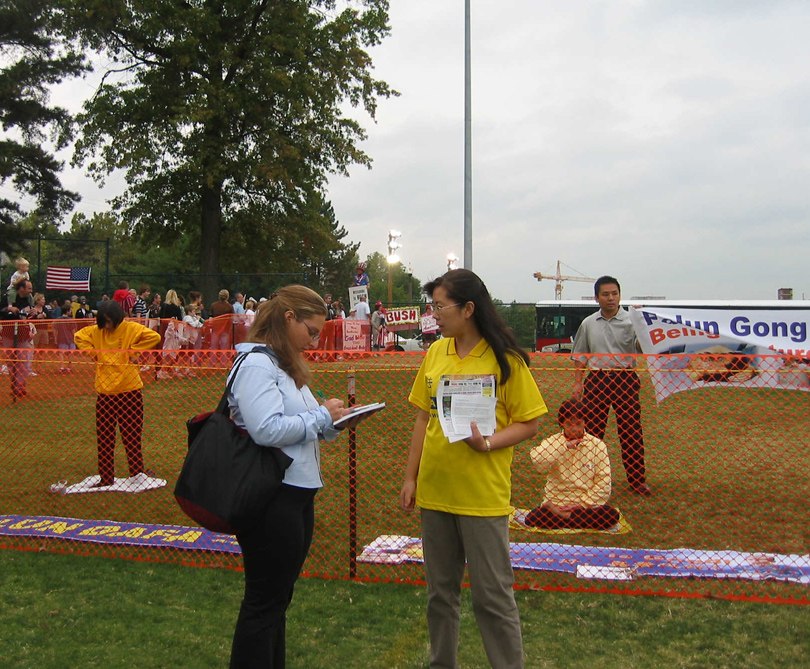 圣路易法轮功学员在美国总统候选人辩论日讲真象(图) |