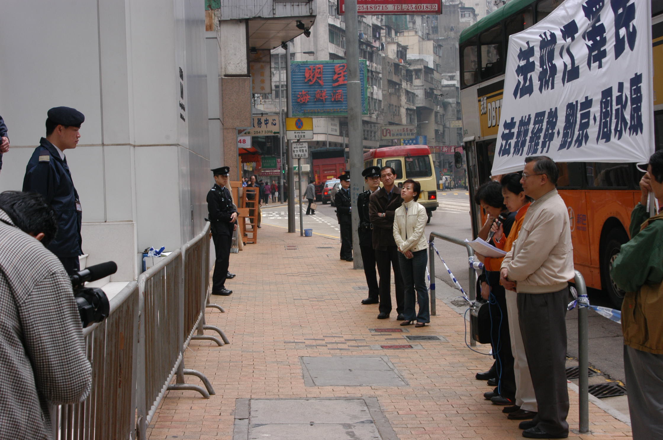 香港法轮功学员请愿 要求法办江罗刘周(图) |