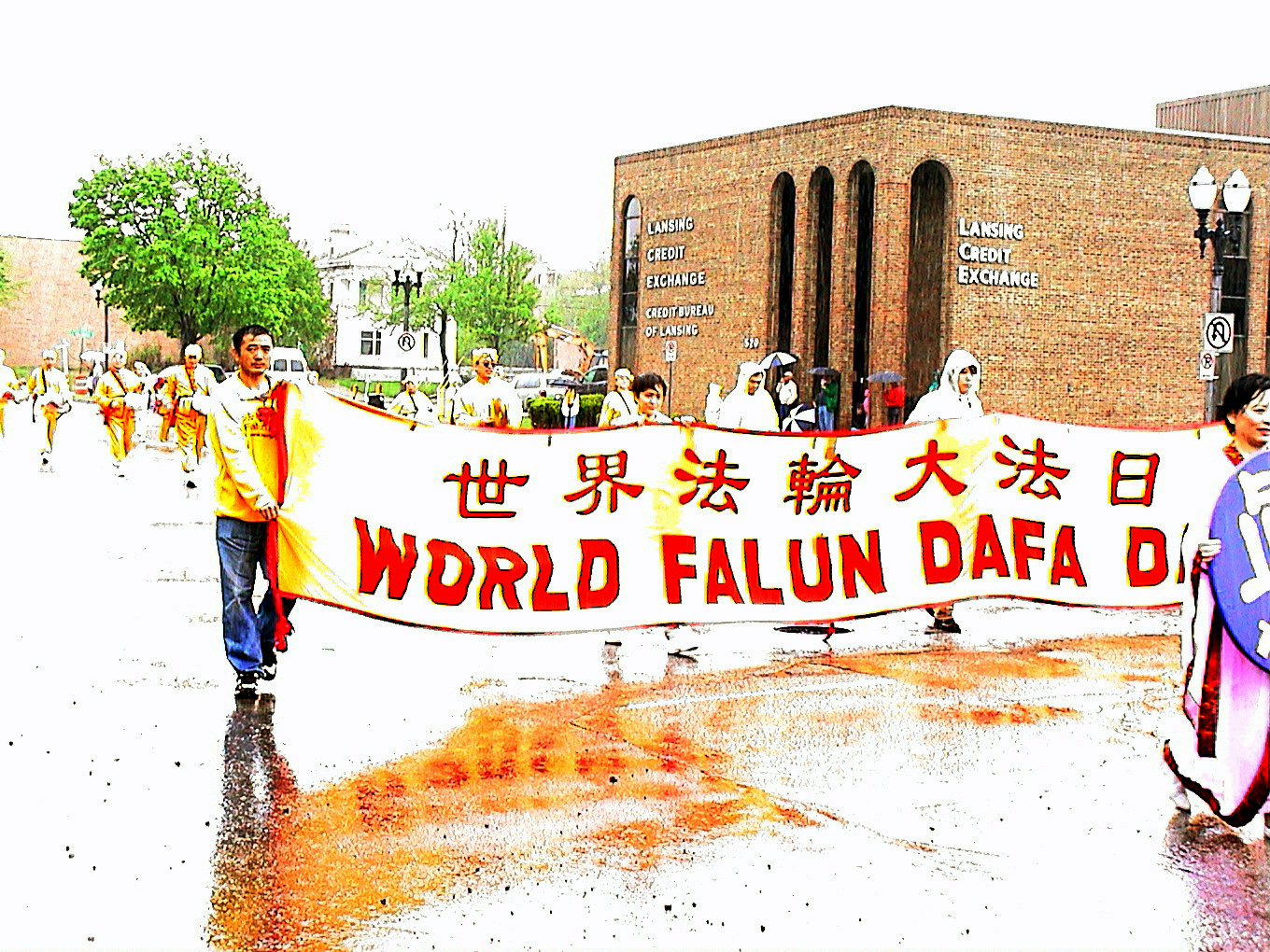 (1379KB)密西根州学员游行庆祝世界法轮大法日(图) (2005-5-21发表)