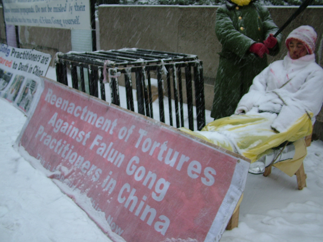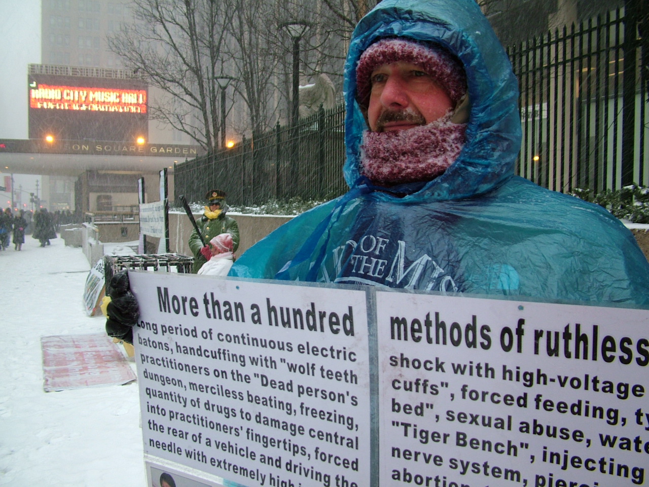 不同国籍的法轮功学员曼哈顿街头冒风雪讲真象(图) |