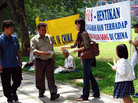 (247KB)印尼雅加达法轮功学员中使馆前抗议中共践踏人权(图) (2007-5-5发表)