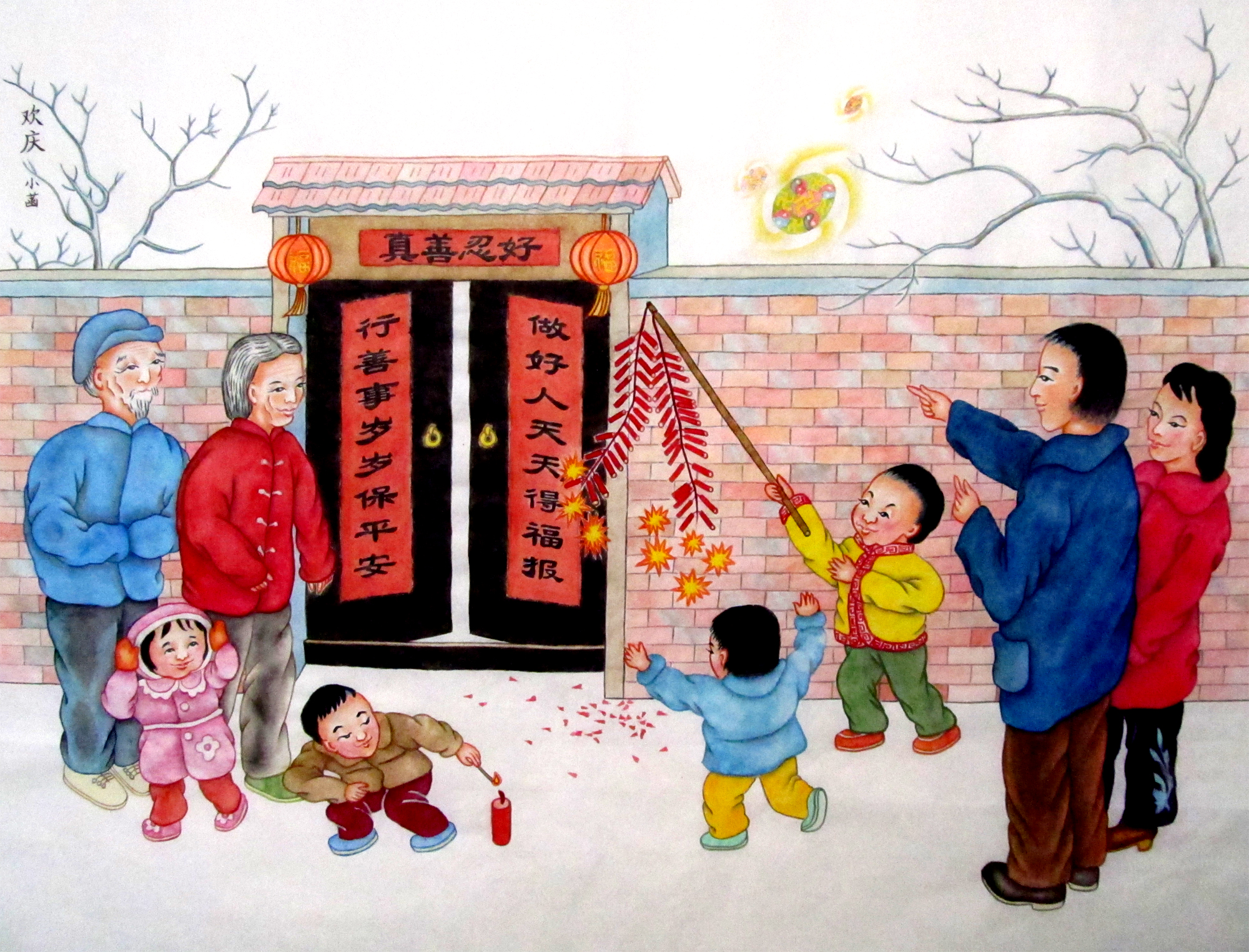 中国画《欢庆》 - 法轮大法明慧网 (2012-12-24发表)