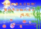 | 江苏大法弟子恭贺世界法轮大法日暨师尊华诞(22条) - 法轮大法明慧网 |