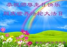 | 大连大法弟子恭贺世界法轮大法日暨师尊华诞(22条) - 法轮大法明慧网 |