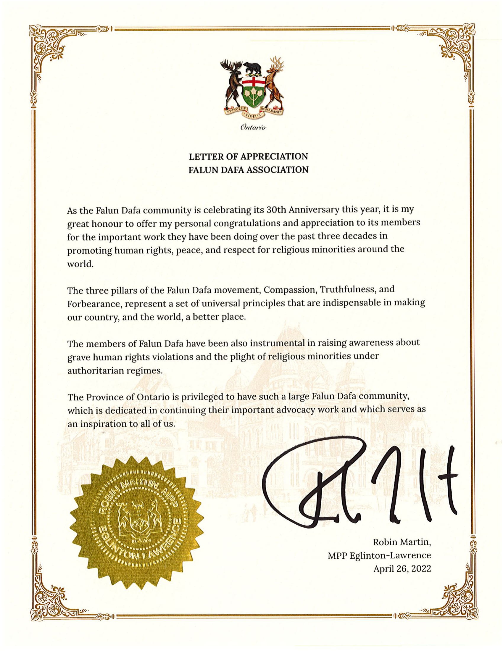 | 加拿大政要恭贺法轮大法弘传三十周年(四) 【明慧网】 |