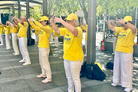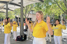 加州尔湾地球村节 法轮功学员展示功法 【明慧网】 |